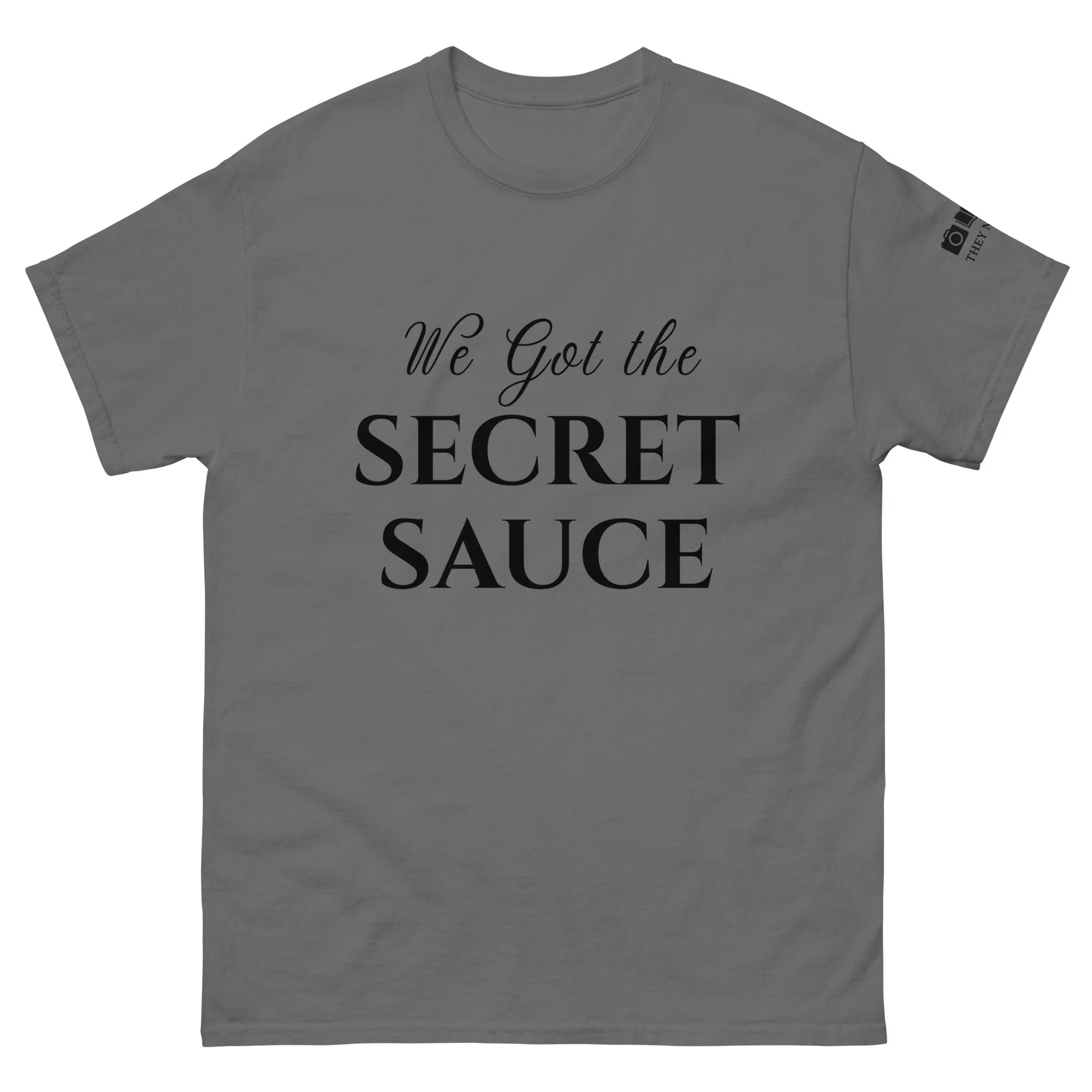 Make a bold statement with the “We Got the Secret Sauce” tee. This design represents confidence, unity, and love all in one powerful message. Whether you wear it solo or match it with your partner, this shirt is perfect for showing the world that you have what it takes to stand out together.